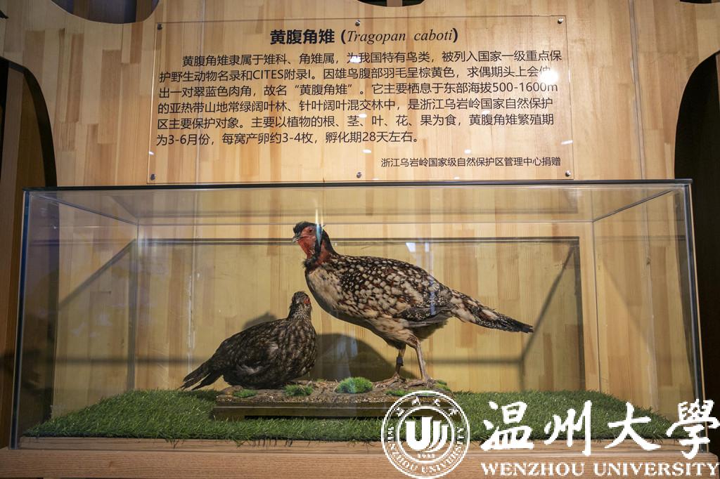 5月18日下午,新澳门六合彩 生命与环境科学学院动物标本展示馆正式开馆。值得注意的是,泰顺乌岩岭国家级自然保护区管理中心还向该馆捐赠了珍贵的具有温州特色的国家一级保护动物黄腹角雉的标本。