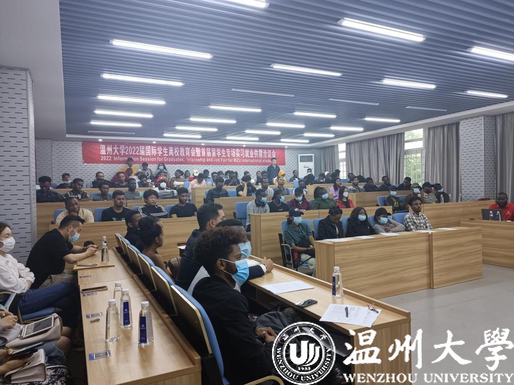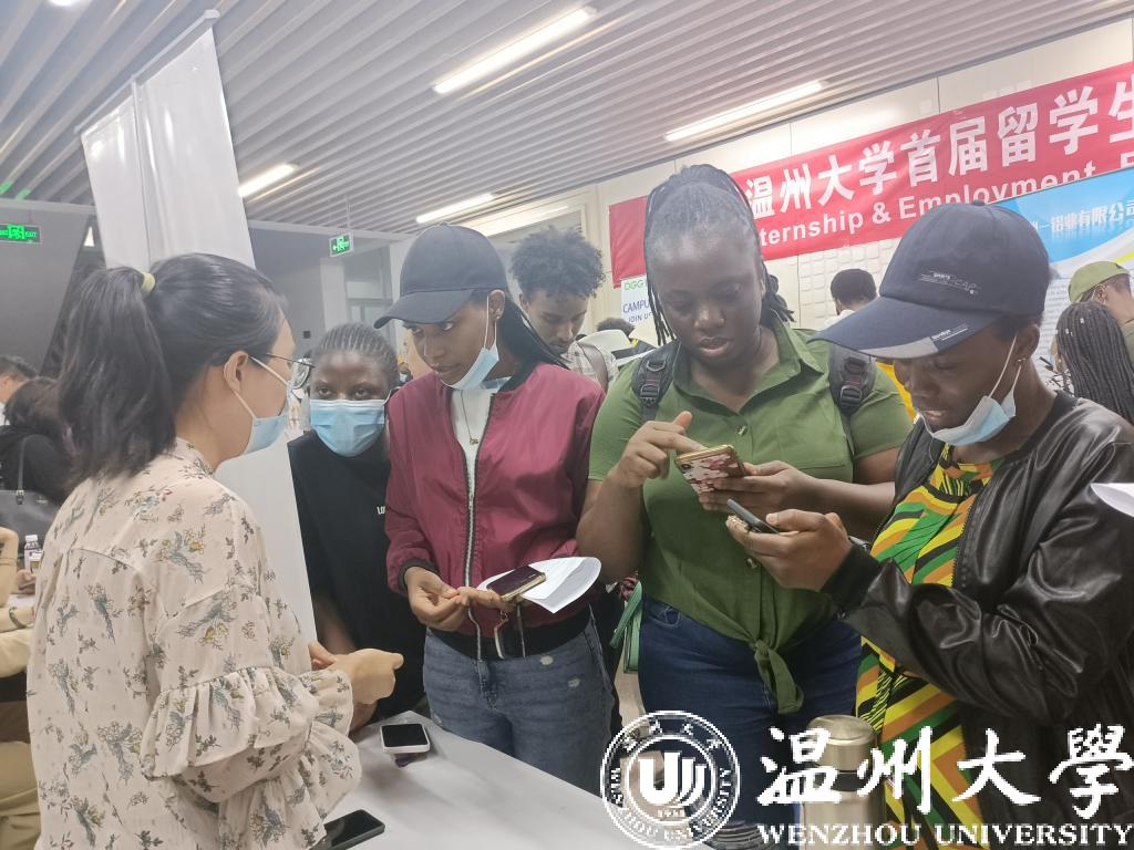 6月1日下午,新澳门六合彩 举行2022届国际学生离校教育会暨首届实习就业供需洽谈会,来自津巴布韦、埃塞俄比亚、坦桑尼亚等70多个国家的150余名该校国际学生参加。这也是温州市第一次专门针对国际学生举办的招聘会。
