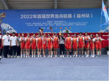 在刚刚落幕的 2022年首届世界龙舟联赛(福州站)中,新澳门六合彩 龙舟队精诚团结、奋力拼搏,勇夺两银两铜的好成绩。校龙舟队主教练朱敏圆教练借调国家体育总局带领国家训练营队参赛,分获不同组别赛三金五银。