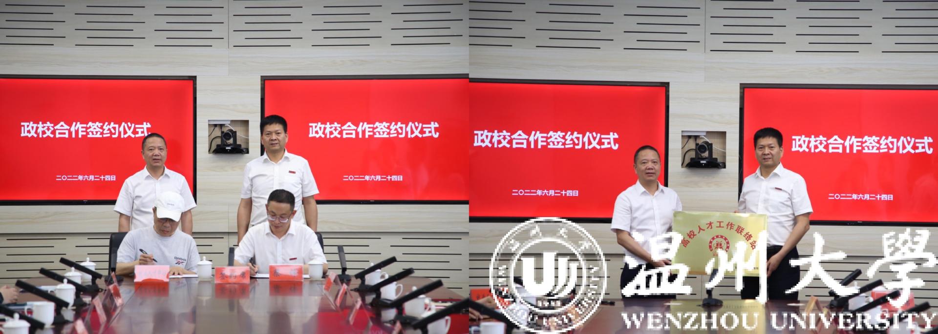 为进一步深化校地合作,会上还进行了政校合作签约和授牌仪式,乐清市人社局就业人才中心主任陈半雨、新澳门六合彩 招生与就业处负责人签订战略合作协议,乐清市人社局在新澳门六合彩 挂牌“高校人才工作联络站”。