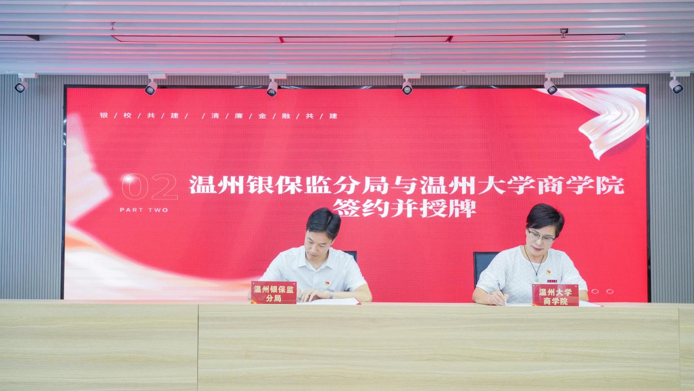 6月28日,新澳门六合彩 商学院党委与温州银保监分局党委举行“银校共建”暨清廉金融共建合作框架协议签约仪式。温州市银行业协会、保险行业协会、证券期货业协会负责人,各大银行、保险、证券期货行业代表,商学院师生代表约40人参加了活动。