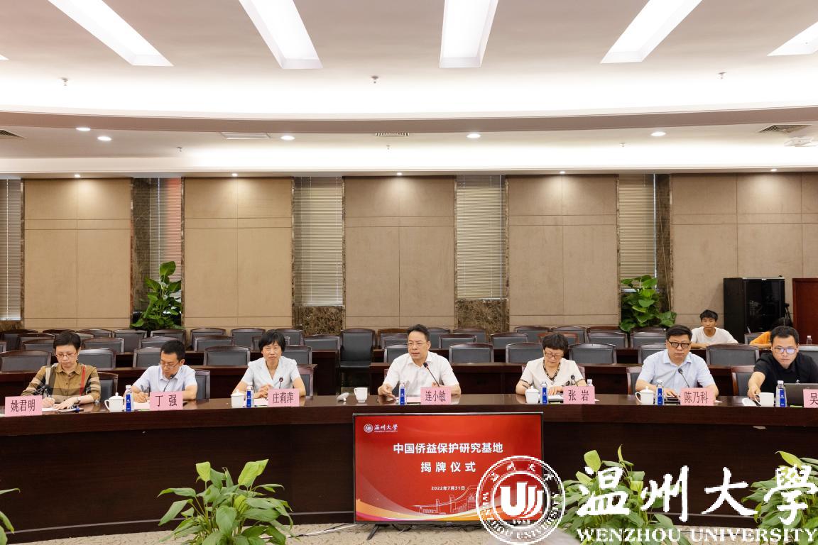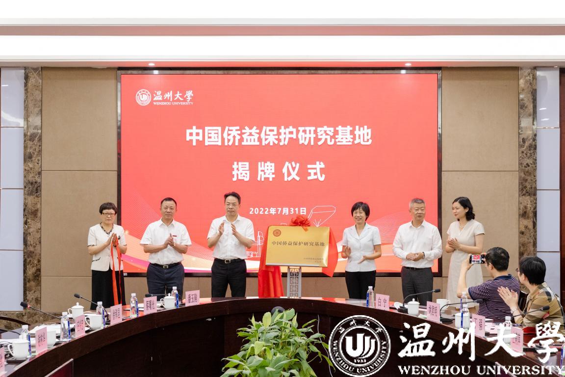 7月31日下午,中国侨益保护研究基地(新澳门六合彩 )揭牌仪式在新澳门六合彩 隆重举行。中国侨联党组成员、副主席候选人连小敏,中国侨联权益保障部部长张岩,浙江省侨联党组书记、主席庄莉萍,温州市委常委、统战部部长汪驰,温州市侨联党组书记吴娜丽,新澳门六合彩 党委书记谢树华共同为基地揭牌。新澳门六合彩 党委副书记庄兴忠主持。