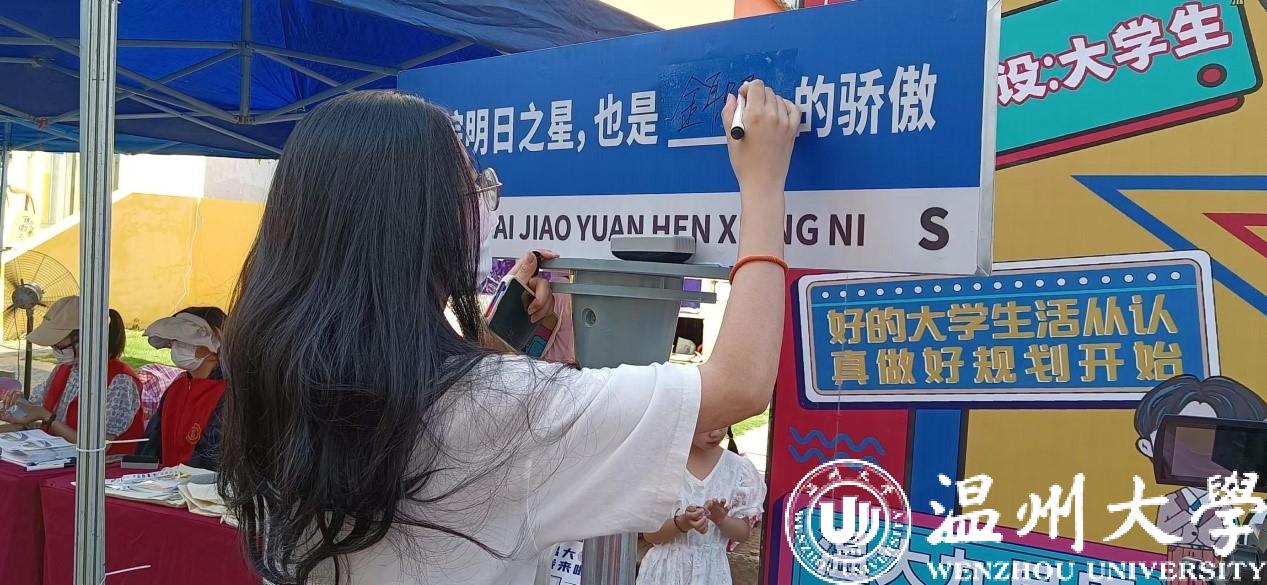 学校迎新的过程中还有机融入生涯教育。独到的扎染手艺,让萌新们感受非遗的魅力;“五育成长之门”开启未来,感受合格体育人的职业规划;“博爱雅艺”打卡点、大学生涯九宫格,助力新生成为明日最亮的星。