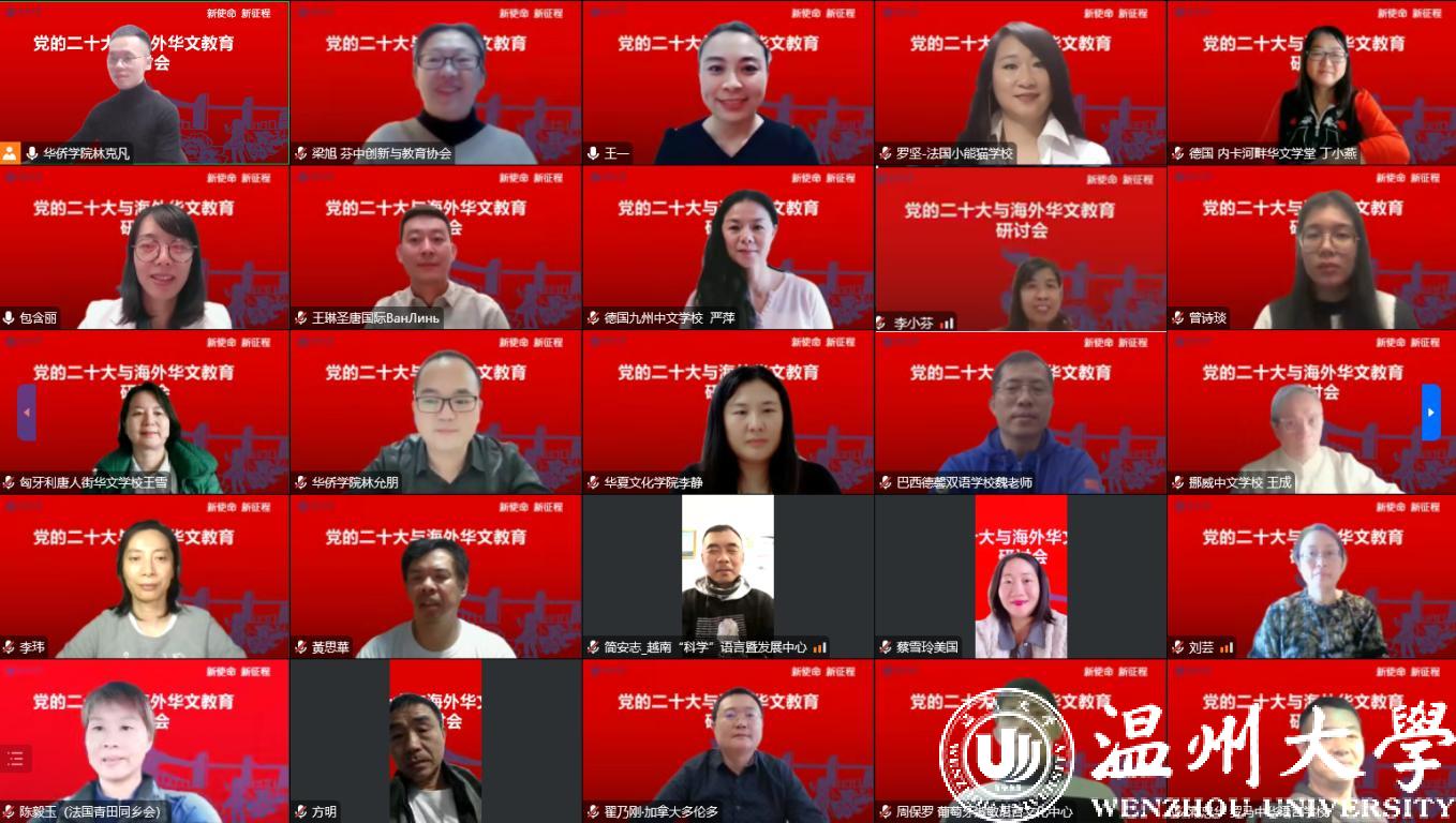 10月21日北京时间晚20点,新澳门六合彩 华侨学院邀请来自五大洲20国的华文学校校长、教师,以“新使命、新征程——党的二十大与海外华文教育”为主题,共同探讨海外华文教育在新时代,更好讲好中国故事、传播好中国声音,展现可信、可爱、可敬的中国形象,推动中华文化更好走向世界的新使命。