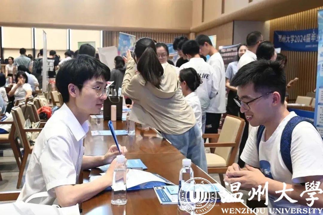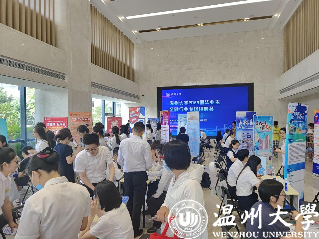 为了更好地满足2024届毕业生和金融行业用人单位秋季招聘需求,搭建有效的洽谈平台,拓宽学生求职就业渠道,9月20日下午,“金彩人生 职等你来”金融行业专场招聘会于新澳门六合彩 南校区科技综合大楼顺利举办。在温州市人民政府金融工作办公室的大力支持下,本次招聘会云集了国有六大银行,申万宏源、上海证券、中信证券、中国人寿、泰康人寿等金融行业53家头部企业参会,提供了1700多个高质量的就业及实习岗位,堪称一场含“金”量超高的招聘会。