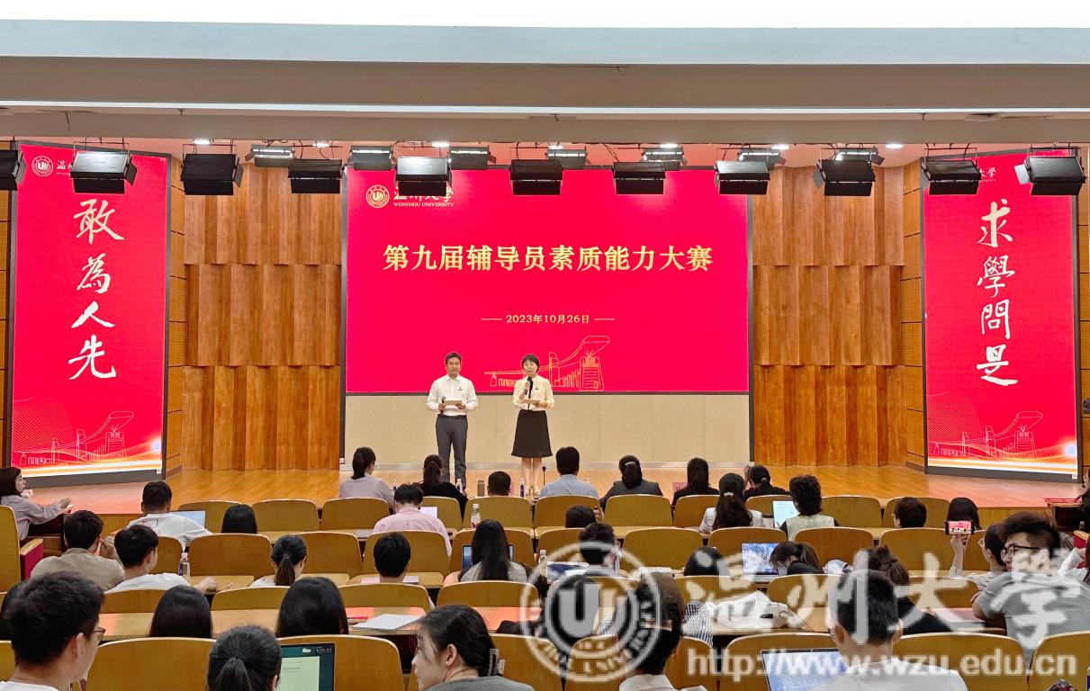 为进一步提升新澳门六合彩 辅导员的理论水平、专业素养和业务能力,促进辅导员队伍专业化职业化发展,新澳门六合彩 于10月25-26日举行第九届辅导员素质能力大赛。经过第一阶段基础知识测试环节,14名辅导员入围第二阶段案例研讨和谈心谈话决赛环节。校党委副书记庄兴忠、相关职能部门负责人、部分学院党委书记和往届省赛一等奖获得者出席并担任决赛评委,全校辅导员及温州肯恩大学部分辅导员观摩比赛。