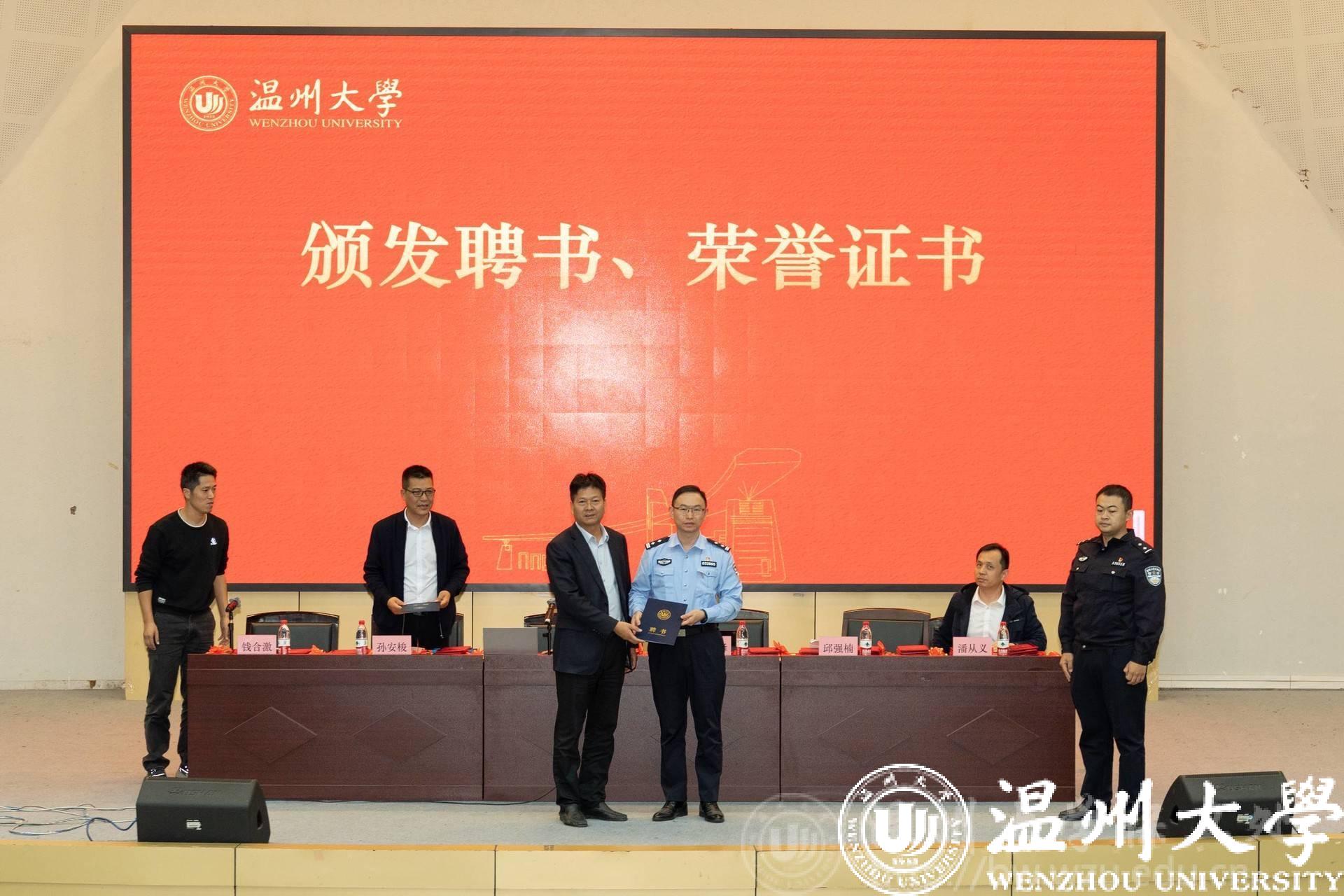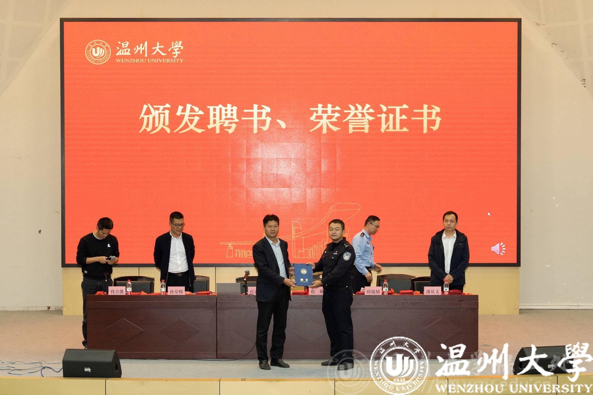 庄兴忠为詹峰、邱强楠颁发了新澳门六合彩 安全法制讲师聘书。