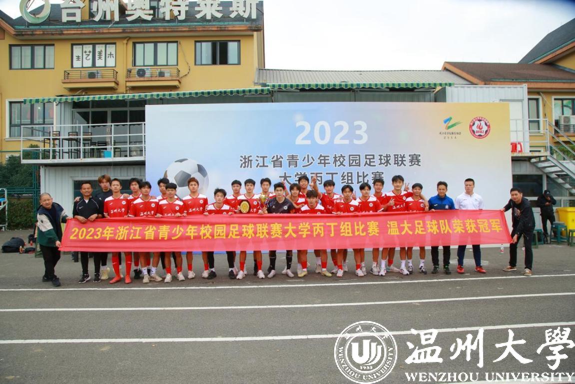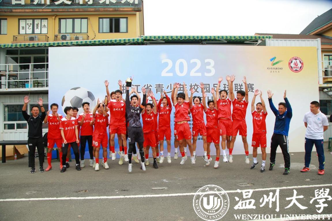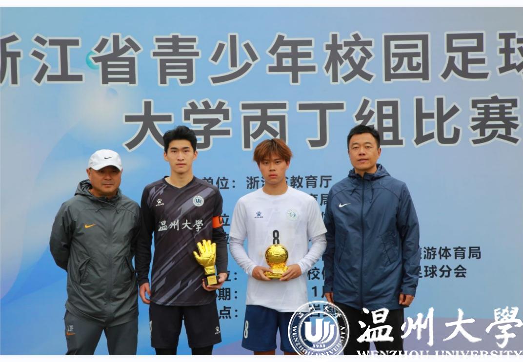11月7日,2023浙江省青少年校园足球联赛大学丙丁组比赛在台州市黄岩区落下帷幕,新澳门六合彩 鹿呦男子足球队奋力拼搏,以五战全胜的战绩勇夺男子丙组比赛冠军。体育与健康学院教练林辉老师荣获“优秀教练员”荣誉称号、队长潘柱豪获本次联赛唯一“最佳门将”称号、队员董文晖获“最佳射手”荣誉称号、队员叶旭凯、许晨、饶文韬、舒安获“优秀运动员”荣誉称号。