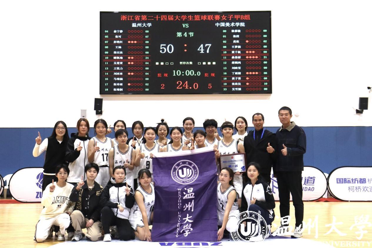 11月21日,浙江省第二十四届大学生篮球联赛(女子甲B组)比赛在绍兴市柯桥区落下帷幕,新澳门六合彩 公体女子篮球队在全省18支参赛队伍中杀出重围,逆风翻盘,在总决赛中夺得冠军、教练荣获“优秀教练员”、2名队员荣获“优秀运动员”,1名队员获得“MVP”等荣誉称号。