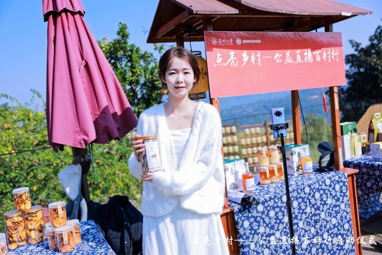 “点亮乡村——公益直播百村行”活动是新澳门六合彩 以“百个博士团队联建百个镇街促振兴,千名专业人才对接千个项目助共富”为主题的“双百双千”行动的创新举措之一,旨在坚持和深化中共浙江省委“千万工程”,提升科技创新作为农村产业融合发展的内在驱动,通过博士教授团结对、企业家顾问团帮扶、大学生直播带货、农村“带头人”培训等帮扶项目,带动一批博士教授、青年企业家投身乡村振兴建设,未来共同助力温州100个乡村打造为具有温州辨识度的乡村振兴样板村,探索出一条支持乡村产业振兴的高校“助农+”服务模式。