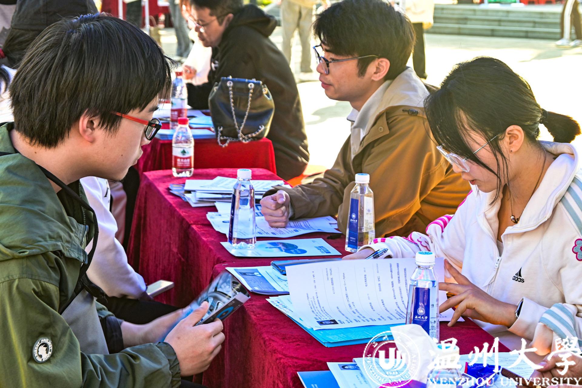 本次招聘会由浙江省教育发展中心、温州市人力资源和社会保障局以及新澳门六合彩 联合主办,现场设置国企专区、制造类专区、金融类专区、教育类专区、综合专区和地市人社专区,共有市内外310家企业参会揽才,其中,绍兴人才交流中心、苍南国资委等单位组团前来参会,除教育类外,超2/3为上市企业及子公司,现场提供就业岗位计9300余个,岗位需求量大、需求层次丰富,涵盖新澳门六合彩 各专业,共吸引校内外参会学生近5000人。据不完全统计,参会用人单位共收到简历6000余份,现场达成初步就业意向1500余人。