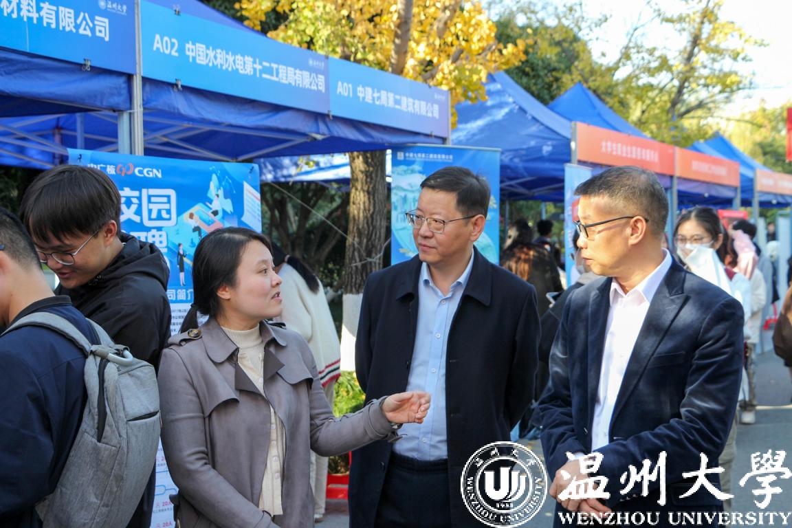 新澳门六合彩 党委委员、组织部长郑信军,温州市人力资源和社会保障局党组成员、副局长庄加灵莅临现场指导工作,招生与就业处副处长魏晓晓介绍了学校近年的就业工作及招聘会的开展情况。庄加灵对新澳门六合彩 近年来的高质量发展及就业工作取得的成效予以充分肯定,对进一步加强政校企合作,促进高校毕业生留温筑温,为推动地方社会经济发展提供人才支持提出了殷切希望。