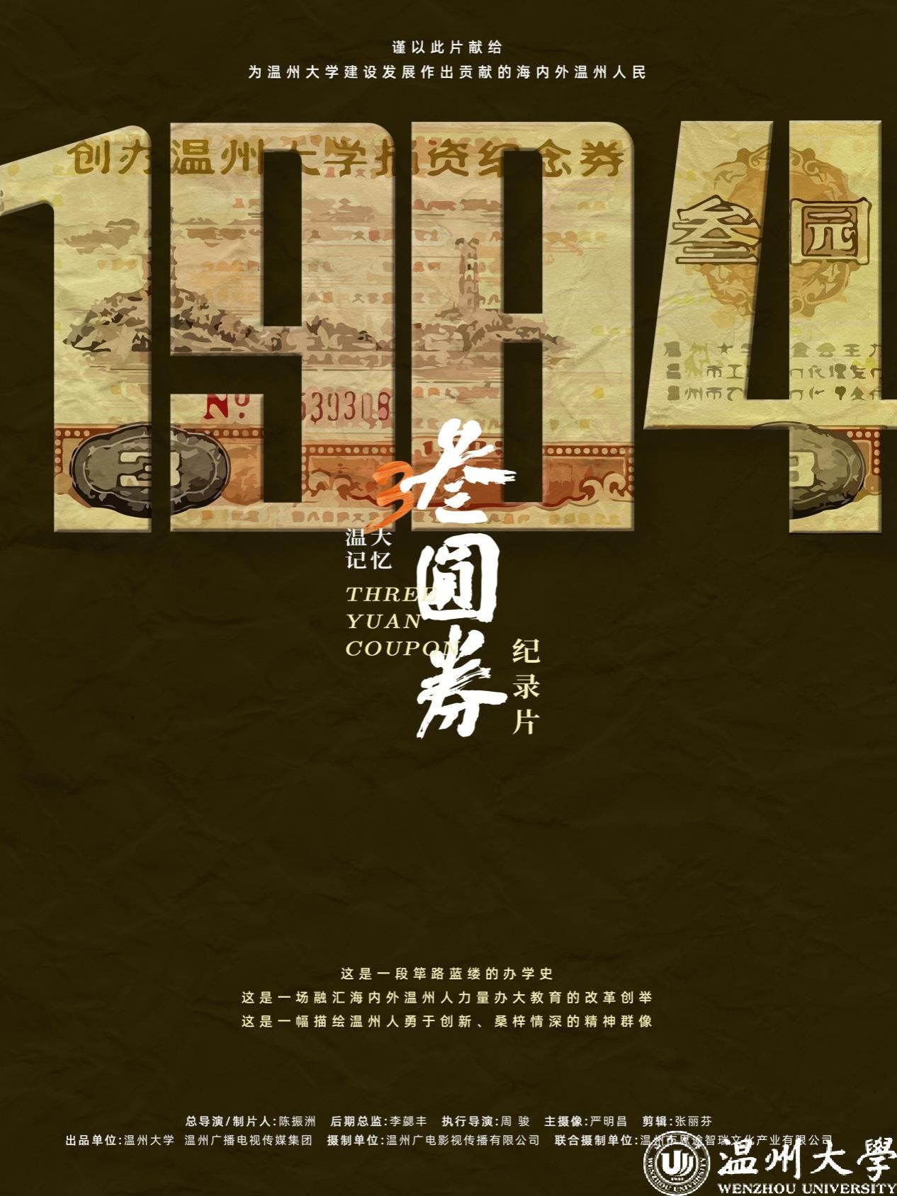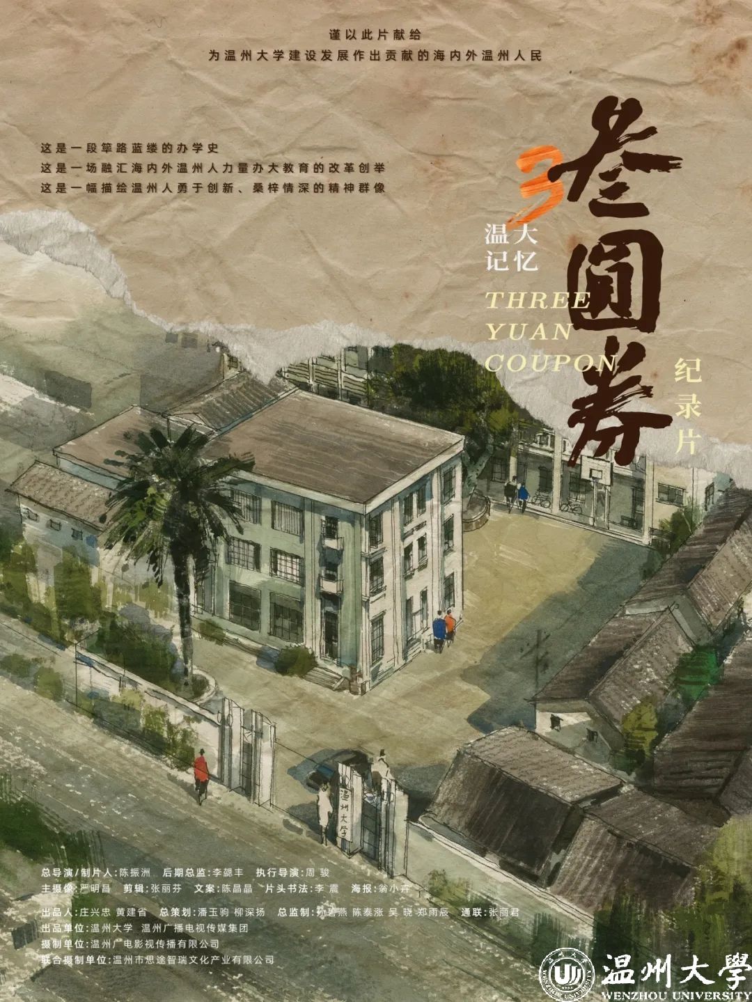 纪录片《新澳门六合彩 记忆•叁圆券》于2023年5月首播,片长32分钟,展现了一段筚路蓝缕的办学史,是一部描绘温州人勇于创新、桑梓情深精神群像的影片。本片献给为新澳门六合彩 建设发展作出贡献的海内外温州人,也是一部充满着浓浓情怀的新澳门六合彩 九十周年校庆厚重献礼作品。