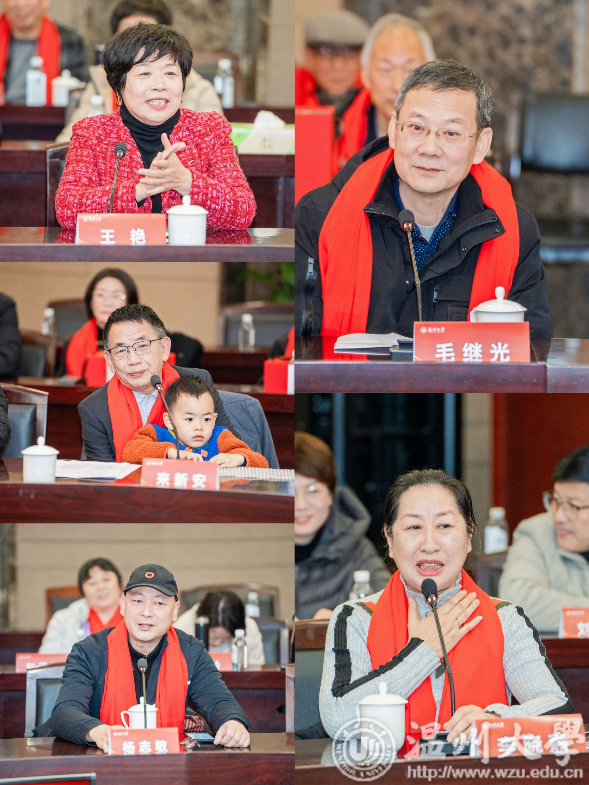 会上,与会人员集体观看了荣休教师原工作单位送上的深情祝福视频。商学院的来新安老师、体健学院的杨志敏老师、外国语学院的毛继光老师、音乐学院的李晓燕老师、纪检监察室的王艳老师等5位老师作为荣休教师代表发言。他们深情回顾了自己的教育生涯,分享了宝贵的教学经验和工作感悟,表达了对学校和同事们的不舍和感激之情,对学校人事处在假期还举行如此隆重而温馨的“荣休仪式”深表谢意,也为他们的职业生涯画上圆满的句号,在职场故事里留下幸福美好的回忆,并表示将继续为学校的教育事业发展作出自己力所能及新的贡献。