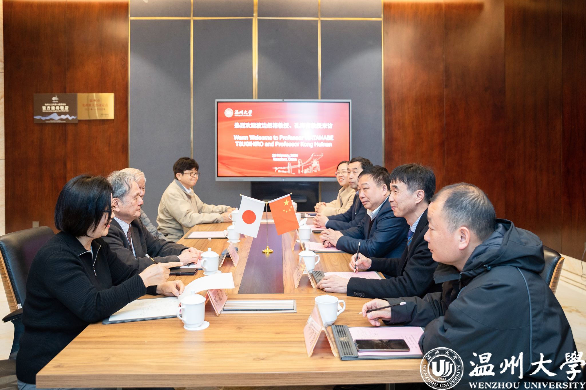 为进一步推动新澳门六合彩 国际化人才交流,促进更多领域、多层次、多维度的科研合作,2月26日下午,新澳门六合彩 与日本京都大学、上海交通大学合作交流座谈会举行。新澳门六合彩 校长赵敏,日本京都大学渡边绍裕教授,上海交通大学孔海南教授,国际处、生环学院负责人及团队代表参加会议。