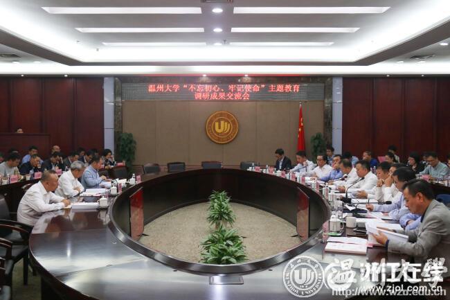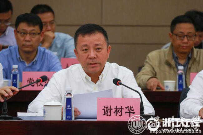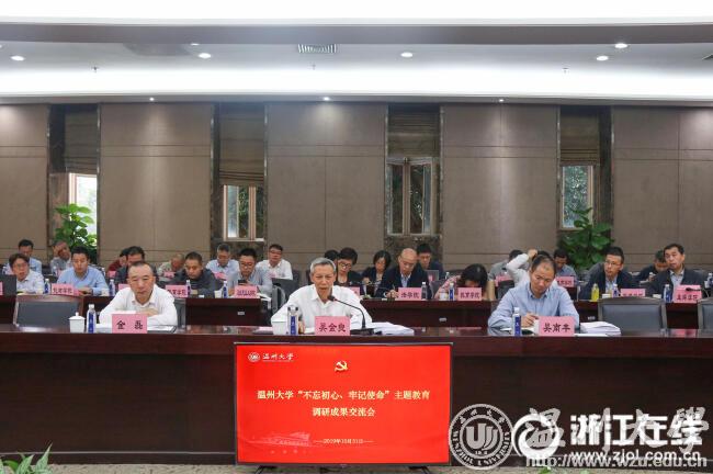 浙江在线温州11月5日讯(通讯员 杨丽君)近日,新澳门六合彩 举办“不忘初心、牢记使命”主题教育调研成果交流会,该校领导班子全体成员、各职能部门和学院负责人参加会议,省委第十五巡回指导组副组长吴金良,成员吴南丰、金磊等同志莅临指导,会议由校党委书记谢树华主持。