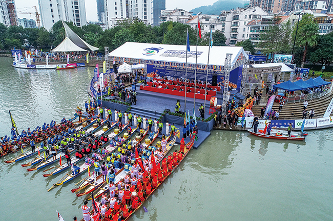 赛龙舟一直是瓯海源远流长的传统体育活动,同舟共济、奋勇争先的龙舟精神也成为瓯海人干事创业的精神动力。去年,2022年杭州亚运会龙舟赛事项目正式落户瓯海,“千年龙舟”与“亚运激情”在瓯海相遇,标志着温州与瓯海全面迈入“亚运时代”,拉近了瓯海与世界的距离。