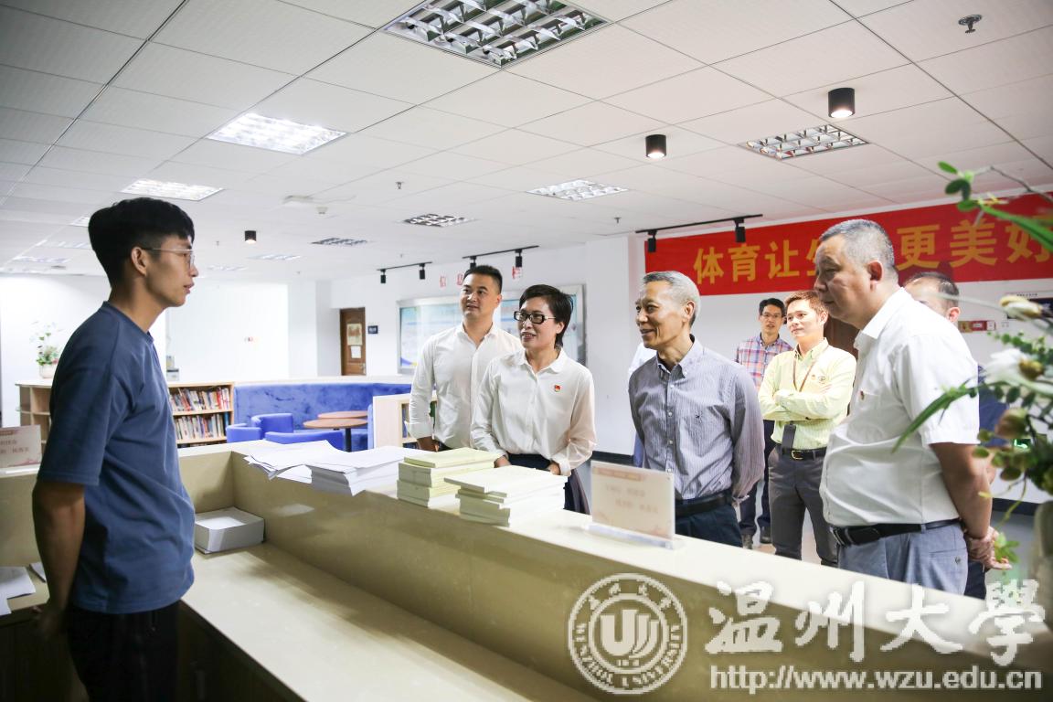 10月16日下午,省委第十五巡回指导组副组长吴金良、成员吴南丰、姚春峰等一行莅临新澳门六合彩 实地调研“不忘初心、牢记使命”主题教育工作,校党委委员、组织部部长郑信军等陪同调研。