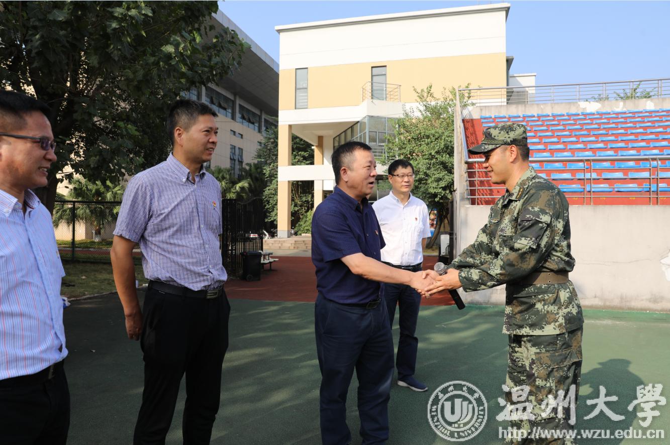 10月11日上午,校党委书记谢树华、党委副书记庄兴忠来到北校田径场,看望并慰问正在军训的学生、教官、辅导员及后勤人员等,了解新生军训情况。党校办、学工部及各相关学院负责人陪同慰问。