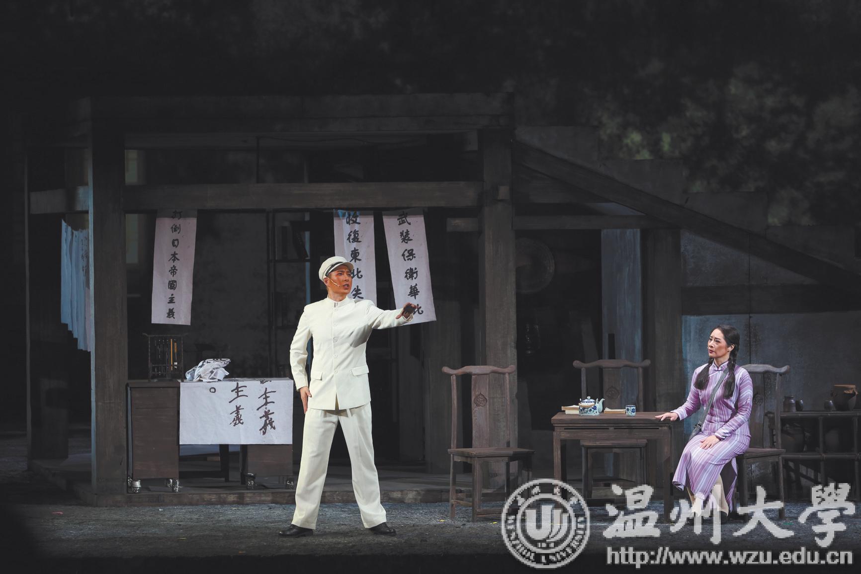 两场演出,容纳1100 多人的温州大剧院歌剧厅座无虚席。约200 名演职人员共同演绎的歌剧《五星红旗》,以艺术手法展现中华人民共和国国旗设计者——瑞安人曾联松先生的故事。该剧通过讲述曾联松1935 年在南京参加“一二·九”运动、1941 年在重庆开展党的秘密情报工作、1945 年抗日战争末期参加抵抗运动以及1949 年新中国成立前夕设计国旗的历程,描绘温州人民在中国共产党的领导下,为争取民族独立、人民解放而书写的壮丽篇章。
