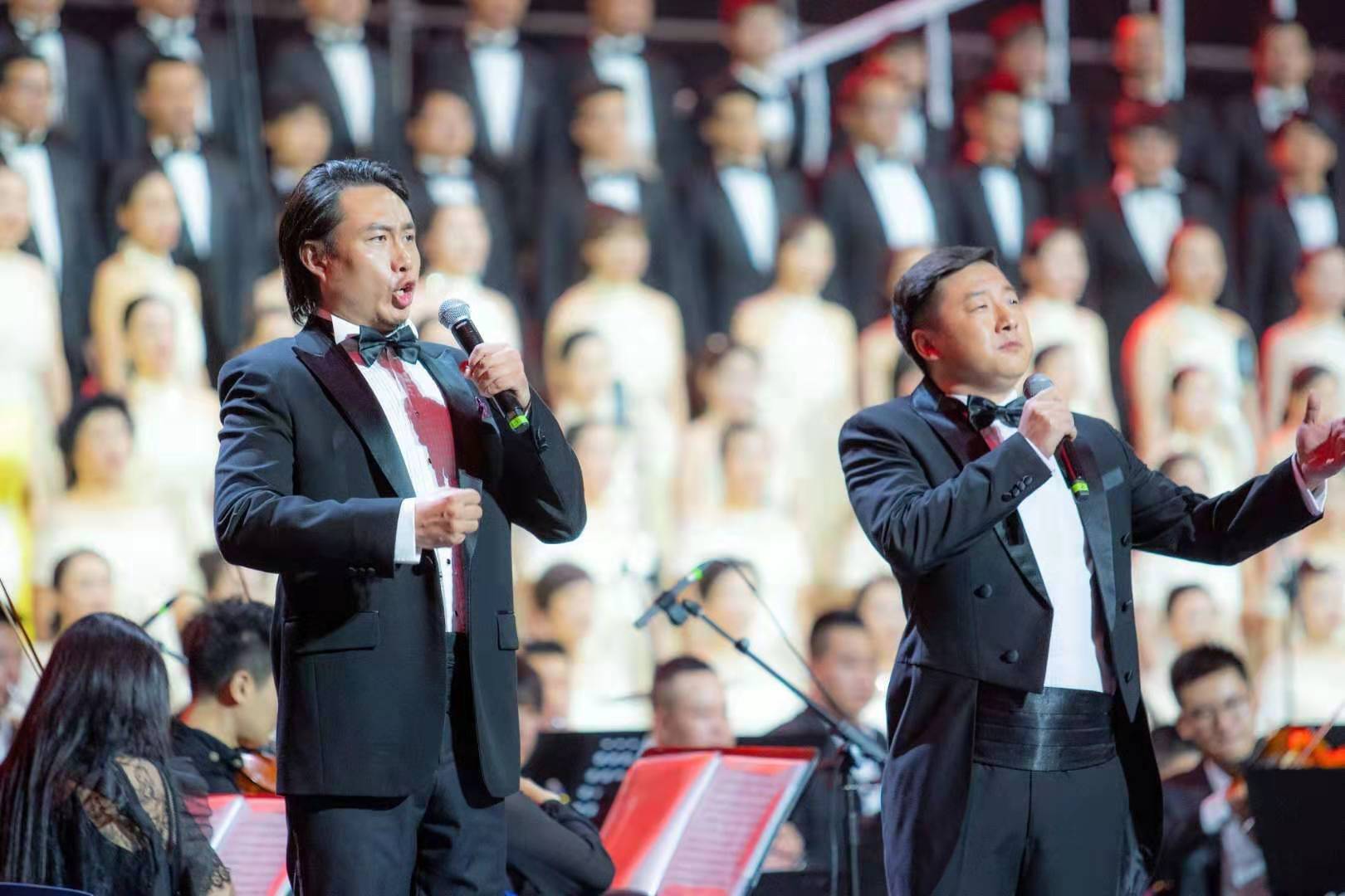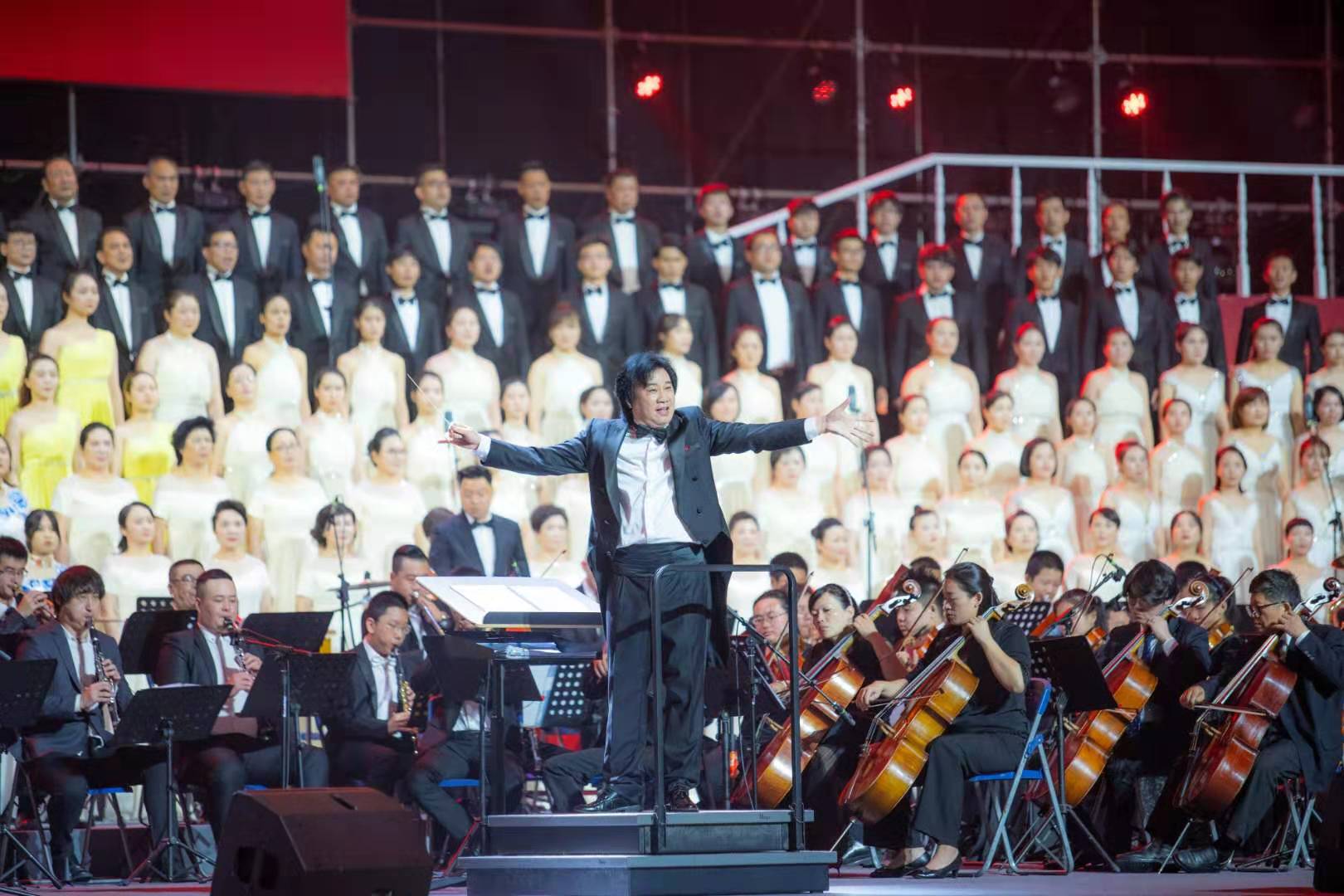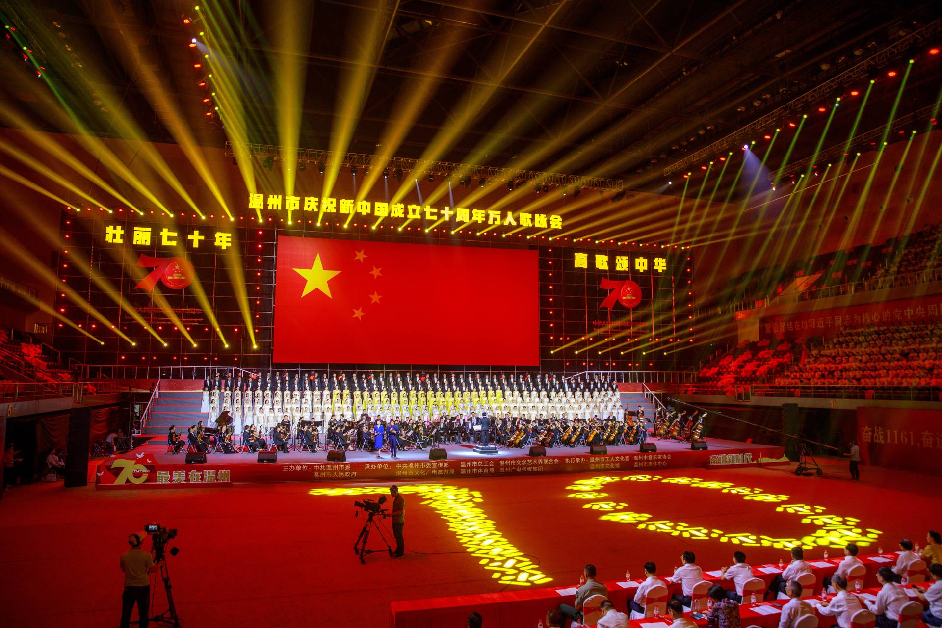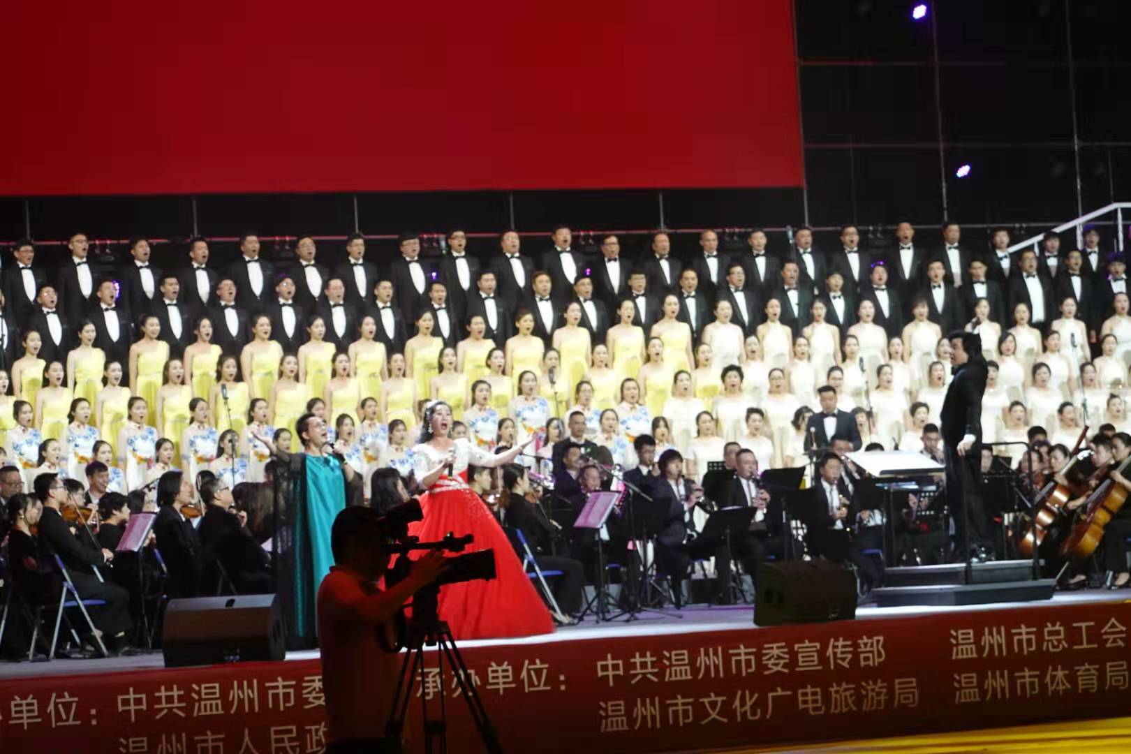 9月26日晚,温州市奥体中心体育馆歌潮涌动。“壮丽七十年、高歌颂中华——温州市庆祝新中国成立70周年万人歌咏会”在这里恢宏唱响。由温州名家艺术团、新澳门六合彩 室内乐团、温州市青少年交响乐团组成的温州市市民交响乐团的130名成员,和来自温州市合唱团、鹿城区女教师合唱团、新澳门六合彩 学生合唱团、瑞安市合唱团的310位演员在主舞台精彩亮相。环形看台上,形成黄、白、粉、绿、军绿等18个彩色方阵,人们手中挥舞着红旗,脸上笑容洋溢。一个半小时里,22首满载爱国激情、抒发幸福情感的经典歌曲,经重新编排配器精彩呈现,彰显出瓯越大地歌颂祖国、歌唱家乡的热血情怀。