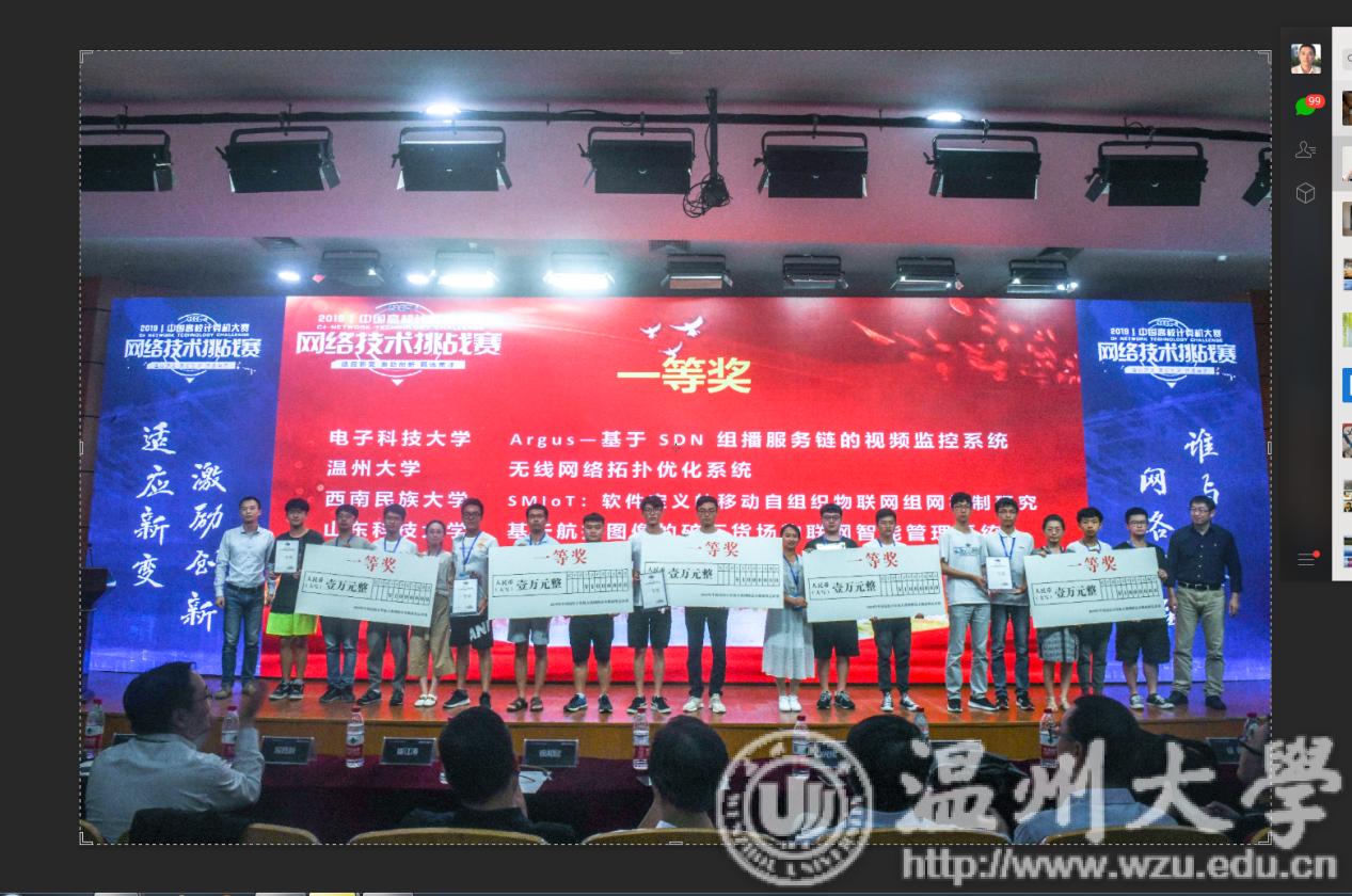 近日,由新澳门六合彩 承办的2019年度“中国高校计算机大赛-网络技术挑战赛”总决赛圆满落幕,新澳门六合彩 学子表现亮眼,计算机与人工智能学院参赛的八支队伍共斩获三项一等奖、三项二等奖和一项三等奖。其中,唐震洲老师指导的作品《无线网络拓扑优化系统》获得创意赛一等奖,黄辉老师指导的作品《基于SDN的设备可视化管理与自动化运维设计与实现》获得技术攻关-软件定义网络赛项一等奖,刘军老师指导的作品《基于AWS的出租车行业大数据分析平台》获得技术攻关-软件定义的云计算赛项一等奖。
