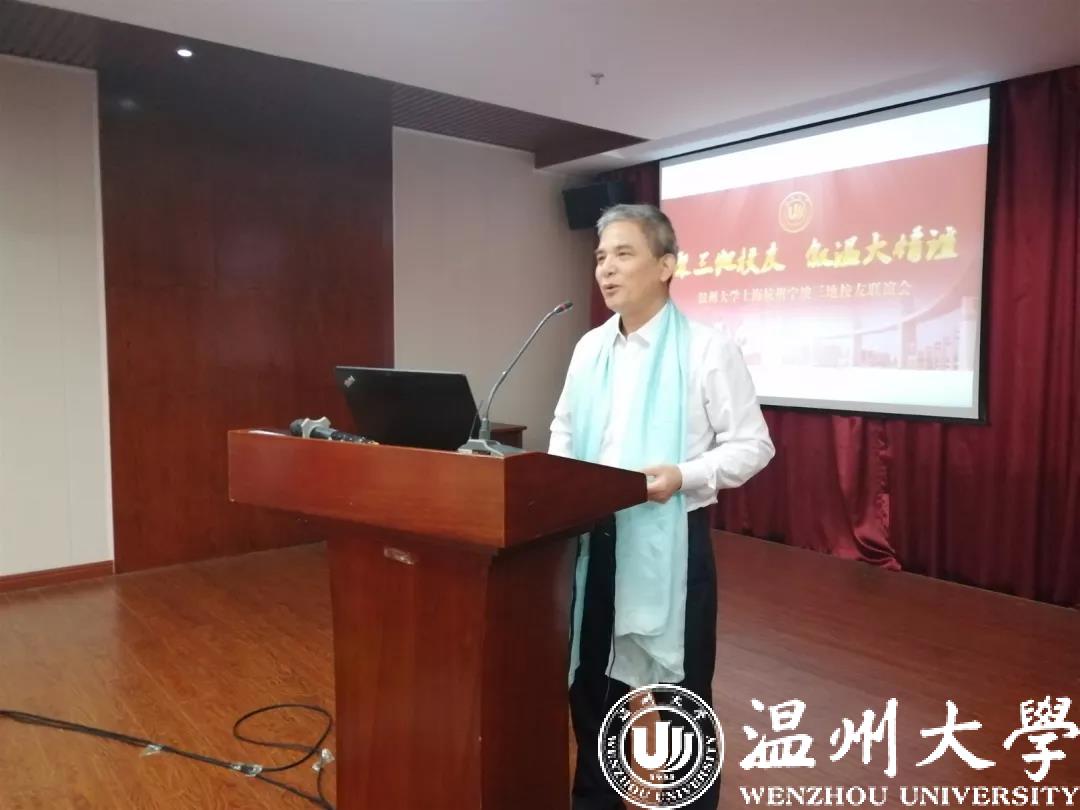 东道主宁波校友会会长钱政致辞。他对学校领导和校友们表示热烈的欢迎,感谢母校对各地校友会的支持。他指出沪杭宁是“长三角”一体化中的“金三角”,需要发挥更大的作用。他表示,要将宁波校友会建设成给社会以影响力,给校友以凝聚力,给母校以助推力,给组织以生命力的校友之家。