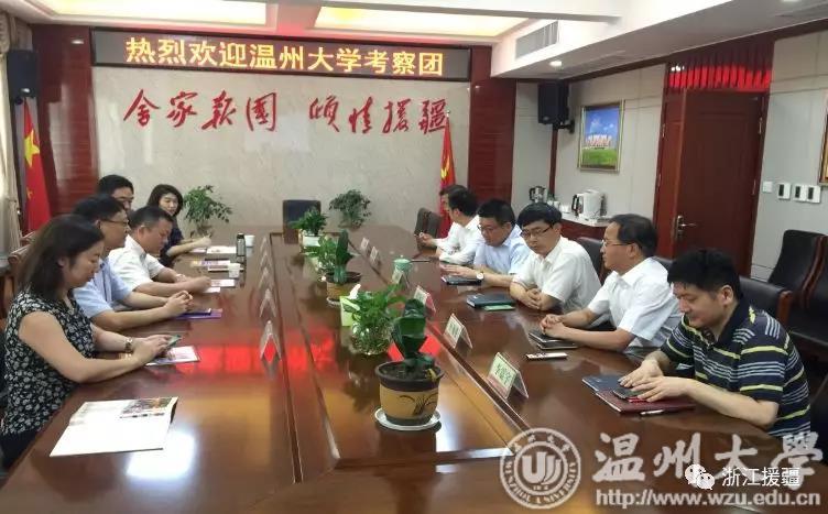 7月8日-10日,校党委书记谢树华、副校长钱强携相关部门负责人,行程万里前往新疆阿克苏地区,看望慰问新澳门六合彩 援疆教师,并走访浙江省、温州市两级援疆指挥部。