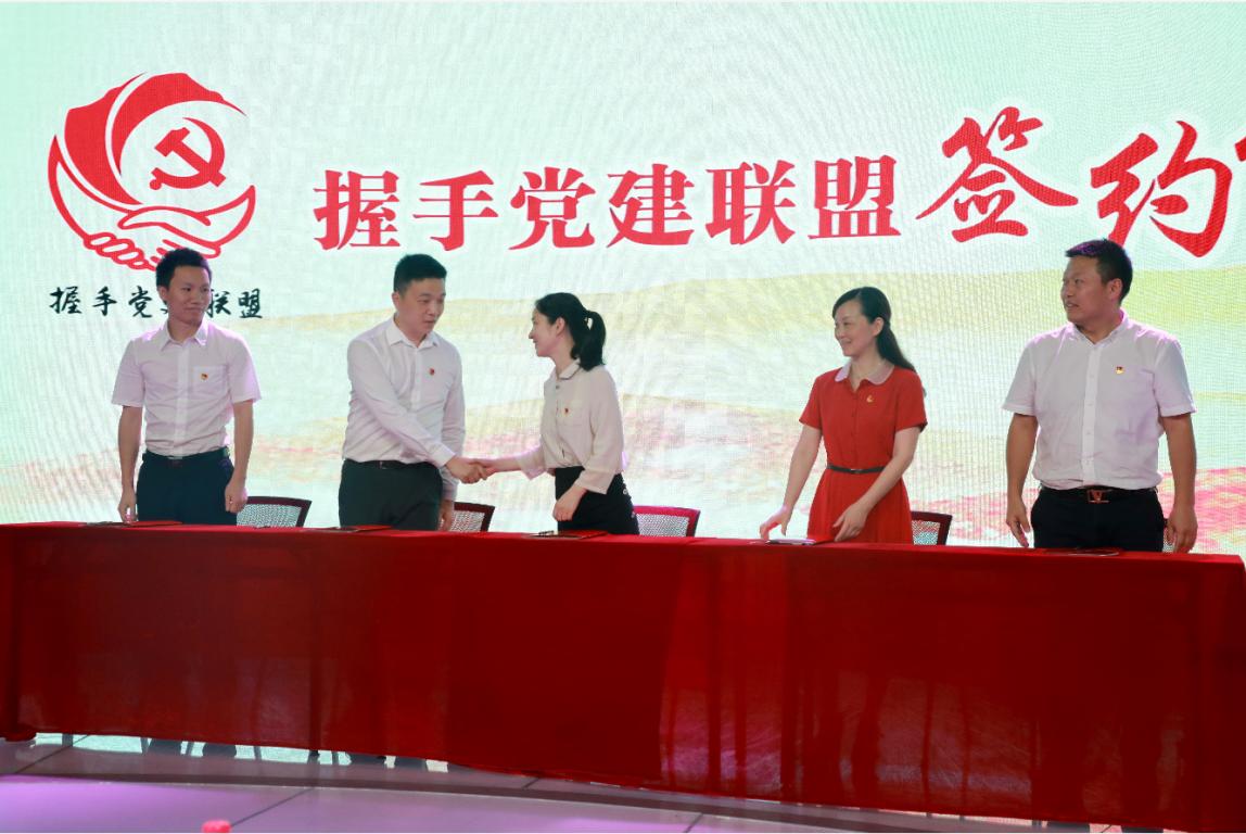 6月28日,“握手”党建联盟启动仪式在浙南科技城举行,新澳门六合彩 美术与设计学院党委同温州市龙湾区委两新工委、浙南科技城机关党委、蒲州街道党工委、瑶溪街道党工委等5家“握手”党建联盟的成员进行签约仪式,并宣读了联盟公约、发布了服务项目清单。
