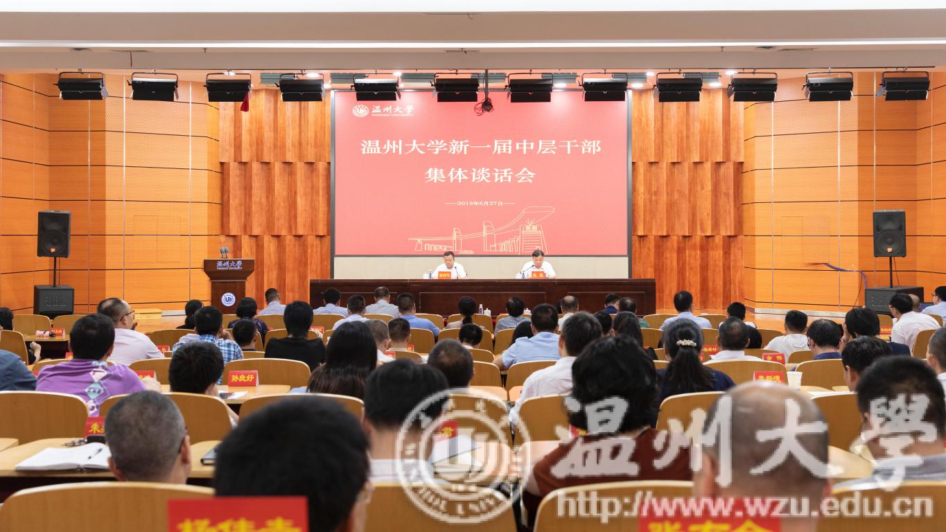 6月27日下午,新澳门六合彩 召开新一届中层干部集体谈话会。校党委书记谢树华在会上强调,新聘期意味着新任务,新岗位意味着新责任。新一届干部要扛起新使命、做好管理者,坚守初心、志存高远、站在高处、想到深处、干在实处,以知重负重、奋发有为的实际行动不断磨炼为学校发展、为师生服务的真功夫、硬本领,为谱写新时代新澳门六合彩 “奋进之笔”新篇章贡献自己全部的力量。