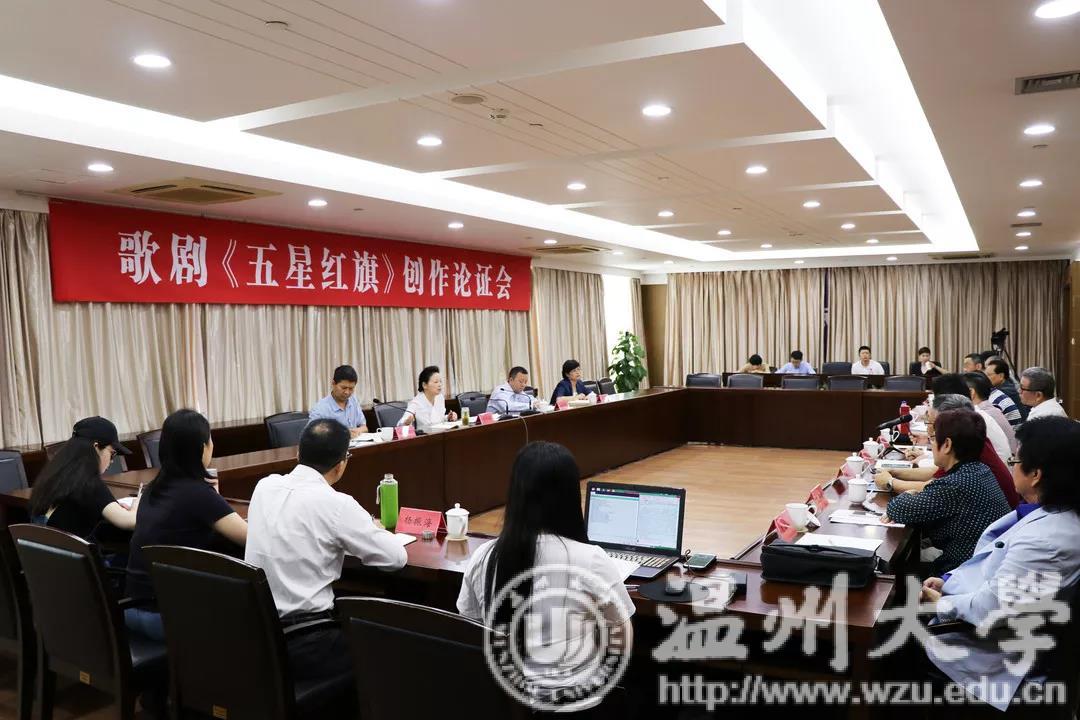 为了向新中国七十华诞献礼,5月21日上午,由新澳门六合彩 和市委宣传部、瑞安市委共同创作推出的原创歌剧《五星红旗》举行创作论证会。市委常委、宣传部部长胡剑谨,市委宣传部常务副部长邱小侠,新澳门六合彩 党委书记谢树华,副书记庄兴忠,党委委员、宣传部部长潘玉驹等同志出席论证会,会议由校党委副书记庄兴忠主持。
