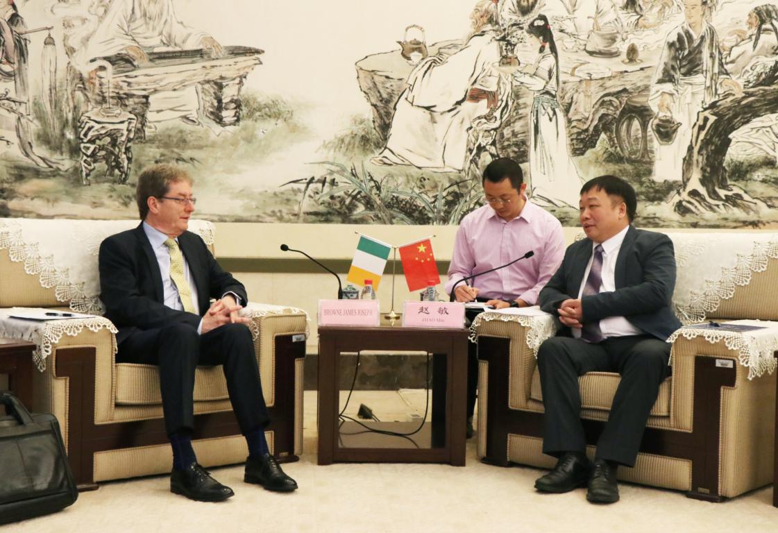 5月13日,爱尔兰工程院主席、爱尔兰皇家工程院院士、前爱尔兰国立高威大学校长Browne James Joseph和清华大学副教授、博士生导师于明来访新澳门六合彩 。校长赵敏、有关部门、学院负责人热情会见客人。