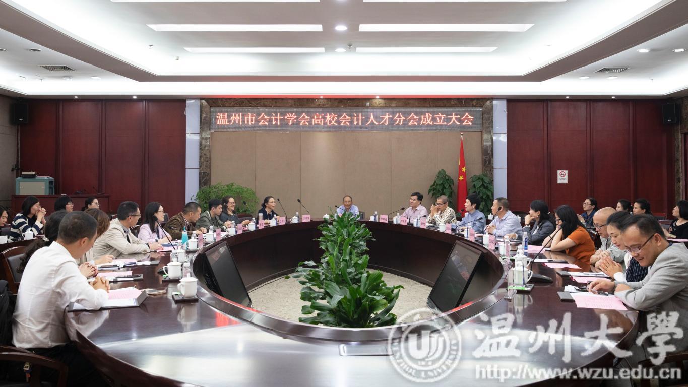 5月9日下午,温州市会计学会高校会计人才分会成立大会在新澳门六合彩 召开。副校长徐和昆,温州市会计学会会长林江帆、秘书长叶建中,温州市注册会计师协会秘书长吴明华,有关单位负责人以及温州各高校计财处负责人等参加会议。