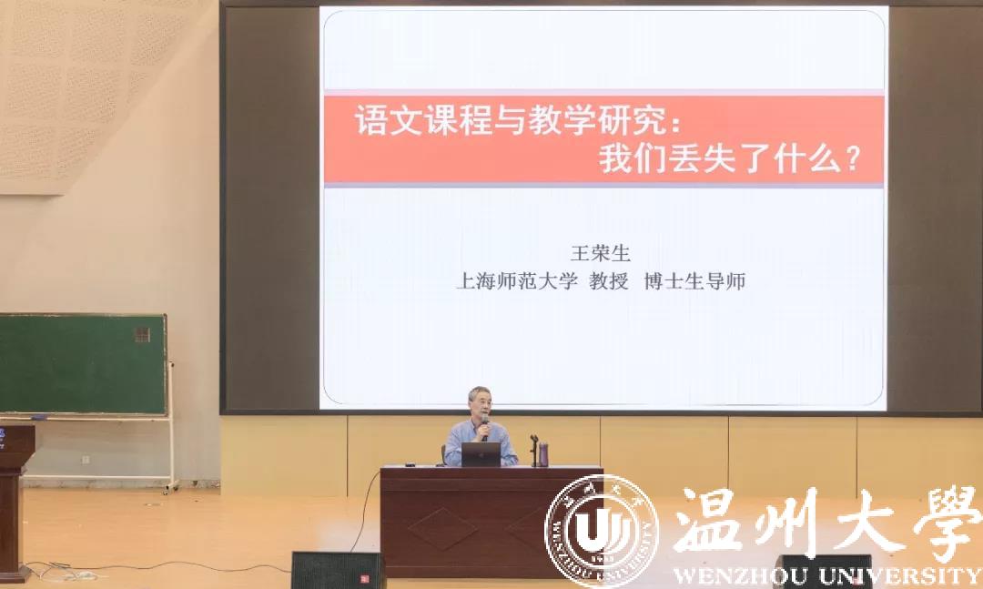 上海师范大学王荣生教授作题为《语文课程与教学研究:我们丢失了什么》的讲座。他对当前的语文教育现状做了简洁而深刻的剖析,从课程与教学论的高度研究语文。他以《家乡的桥》一课为例,深入浅出地阐述了“教学点、知识点、教学环节、学习活动”的课文教学,并着重介绍了“联结、提问、图像化”等阅读策略。