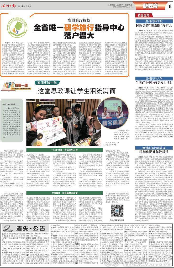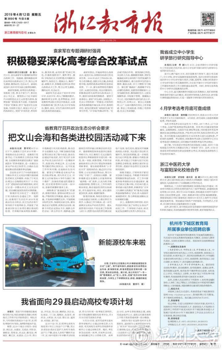 近日,《温州日报》《浙江教育报》、中国高校之窗等媒体对新澳门六合彩 “浙江省中小学生研学旅行研究与指导中心”进行报道。现将全文转发如下。
