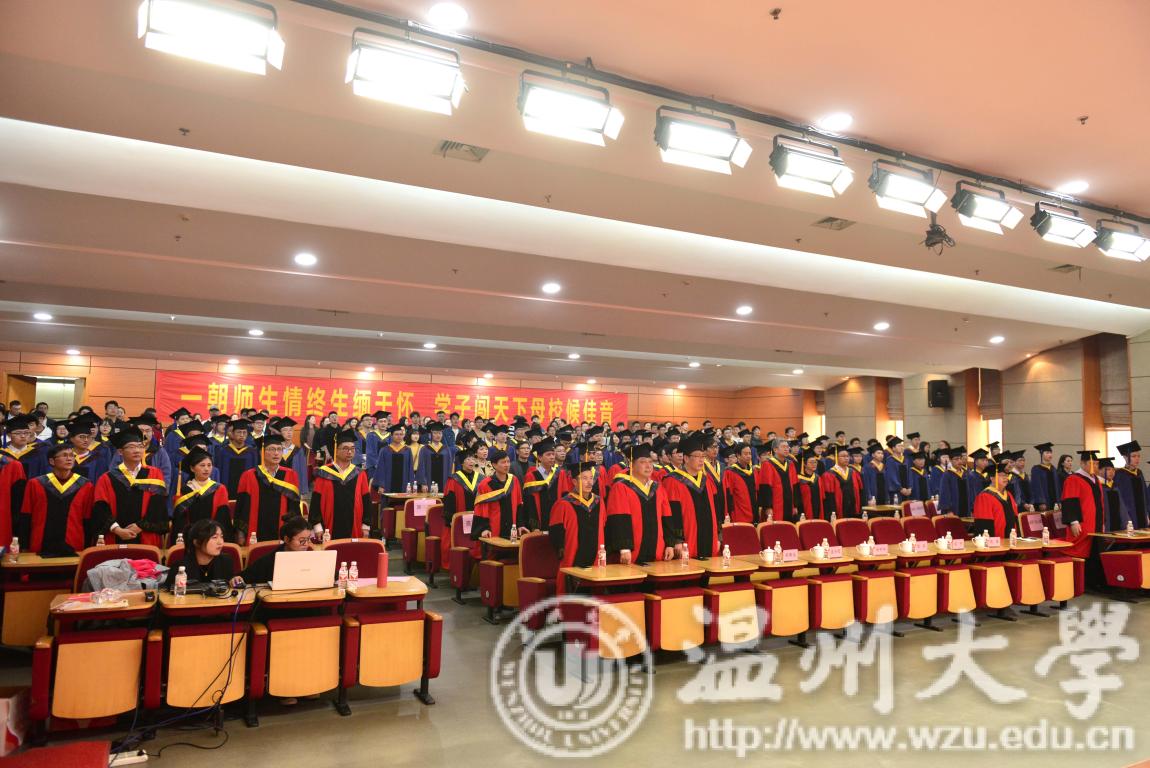 典礼前,校领导、全体毕业生、研究生合唱团还共同演唱《我和我的祖国》。