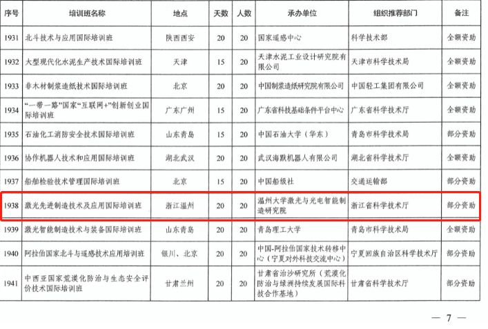 近日,科技部国际合作司公布《科技部国际合作司关于下达2019年度发展中国家技术培训班项目计划的通知》,本年度科技部共批准84个培训班项目,其中境内培训班78项,境外培训班6项。经浙江省科学技术厅推荐,新澳门六合彩 激光与光电智能制造研究院申报的“激光先进制造技术及应用国际培训班”顺利获批。