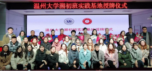 12月28日下午,新澳门六合彩 教务处副处长胡瑜、新澳门六合彩 教师教育学院副院长彭小明、新澳门六合彩 教师培养基地办公室主任朱伟老师、第十期溯初班班主任金丽芳、溯初班管理工作秘书金荣乾以及第十期溯初班全体学员前往温州市实验中学参加“新澳门六合彩 溯初班实践基地”授牌仪式,温州市实验中学校长倪彤、副校长黄慧以及溯初班校外各专业实践导师们共同参加本次活动。温州市实验中学教师发展处主任何倩主持本次活动。
