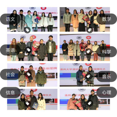 记录最美瞬间,定格历史时刻。新澳门六合彩 教务处胡瑜副处长向温州市实验中学黄慧副校长颁授了“新澳门六合彩 溯初班教育实践基地”牌匾,并向八位各学科导师颁发聘书。溯初班歌学科学员代表纷纷上台为导师们献花。全体老师与溯初班初中方向全体学员共同合影留念,记录师生初识相遇的珍贵瞬间,定格两校强强联手的历史时刻。