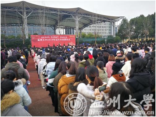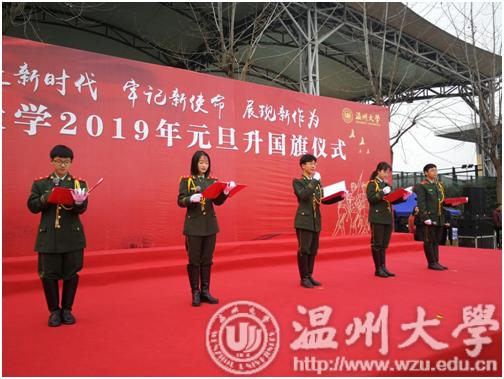 2019年1月1日上午,新澳门六合彩 举行以“奋进新时代 牢记新使命 展现新作为”为主题的元旦升国旗仪式。校党委副书记牟德刚,相关部门、学院、学区负责人及学生代表,国旗护卫队和退伍军人俱乐部全体队员共600余人参加了升旗仪式。