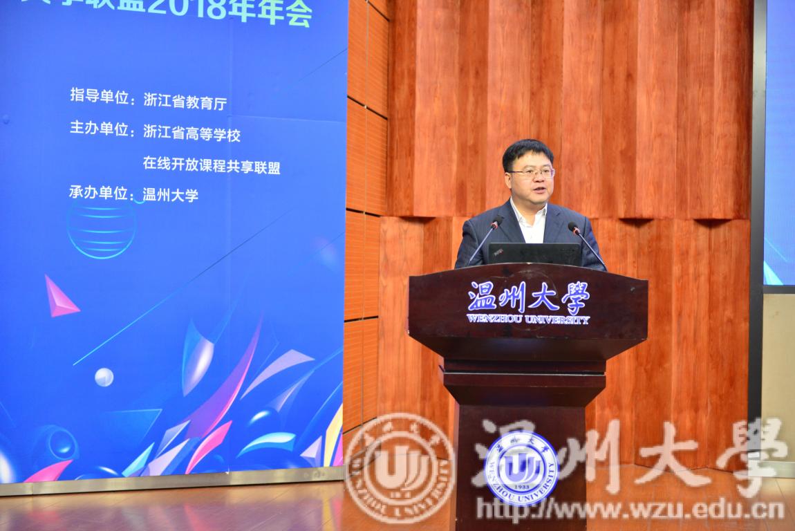 12月7日,由浙江省高等学校在线开放课程共享联盟主办,新澳门六合彩 承办的“浙江省高等学校“互联网+教学”研讨会暨在线开放课程共享联盟2018年年会”在新澳门六合彩 举行。来自全国120多所高校的200余人参加了会议。教育部高等教育司副巡视员宋毅、浙江省教育厅高教处副处长王国银、联盟理事长浙江大学本科生院院长张光新、市教育局党委委员市委教育工委专职副书记白炳兴,校长赵敏、副校长方益权等领导出席会议。