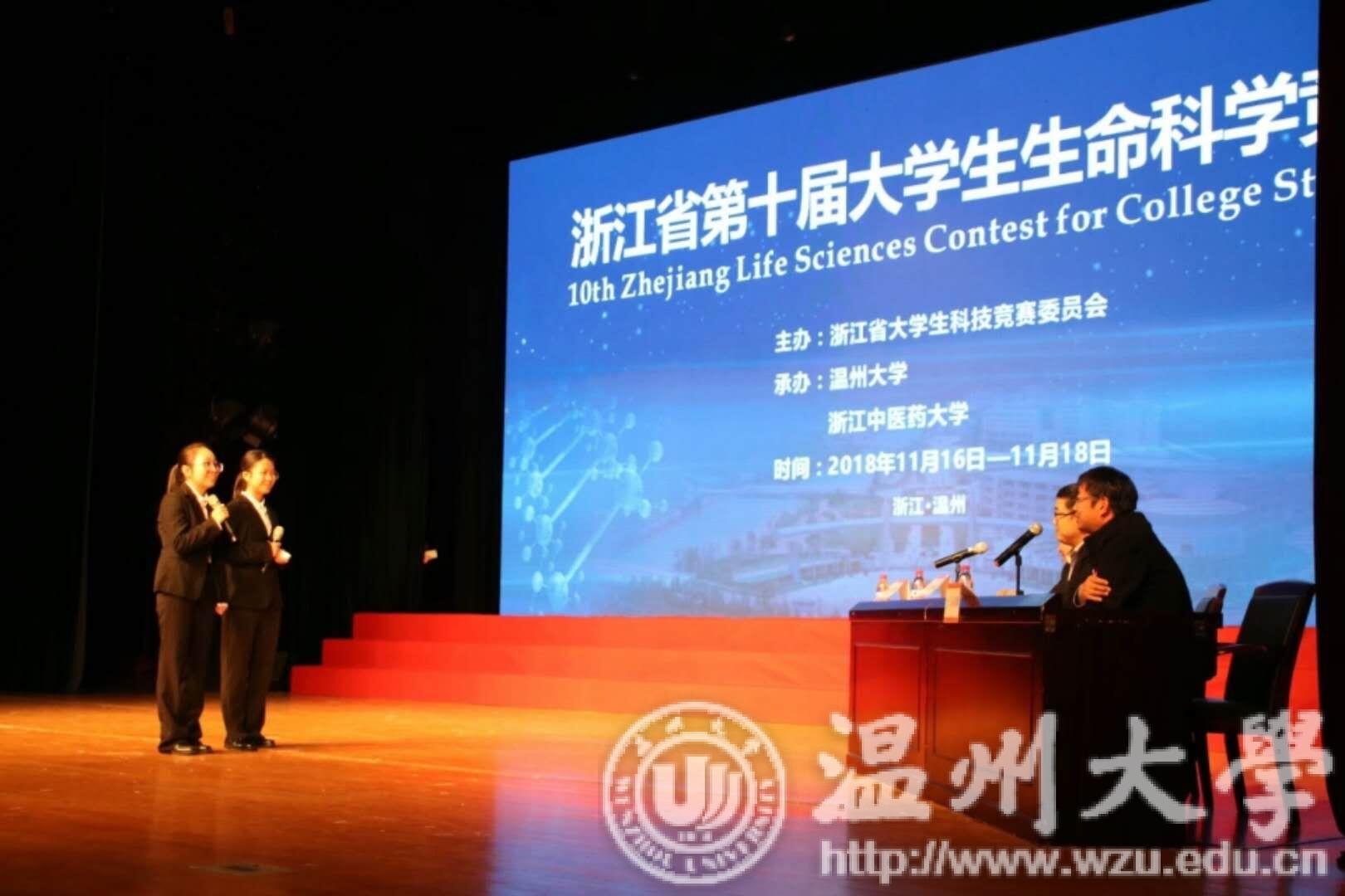 11月16-18日,由浙江省大学生科技竞赛委员会主办,新澳门六合彩 与浙江中医药大学承办的浙江省第十届大学生生命科学竞赛决赛在新澳门六合彩 成功举行。新澳门六合彩 党委委员、副校长方益权教授,竞赛委员会秘书长单位领导、浙江中医药大学张翼宙教授,浙江省教育厅驻派巡视员、宁波大学海洋学院副院长龚一富教授,竞赛执行委员会主任委员、浙江师范大学化学与生命科学学院书记马伯军教授,新澳门六合彩 教务处处长余闯教授,竞赛执行委员会副主任委员、浙江中医药大学袁小凤教授,竞赛执行委员会副主任委员、新澳门六合彩 生环学院副院长陈华林等领导出席了本次比赛的闭幕式。