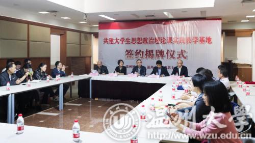 10月24日下午,新澳门六合彩 与温州博物馆、温州道德馆共建的大学生思想政治理论课实践教学基地签约揭牌仪式在市博物馆和道德馆分别举行。教务处、马克思主义学院、温州博物馆、温州道德馆负责人等出席揭牌仪式。