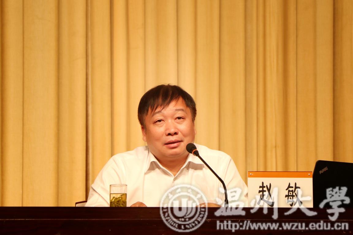 “温州是浙江省的教育大市,人杰地灵,以‘敢为天下先,特别能创业’的温州人精神闻名海内外。”赵敏校长自豪地向同学们介绍了温州和新澳门六合彩 。新澳门六合彩 经历了“两校合并、七校融合”的沿革变迁,是一所年轻而又历史悠久的大学。赵敏勉励新澳门六合彩 学子要以黄溯初、金嵘轩、苏步青为代表的众多先贤师友为榜样,秉承“求学问是,敢为人先”的校训精神,学会做人,勤奋学习,砥砺成才。