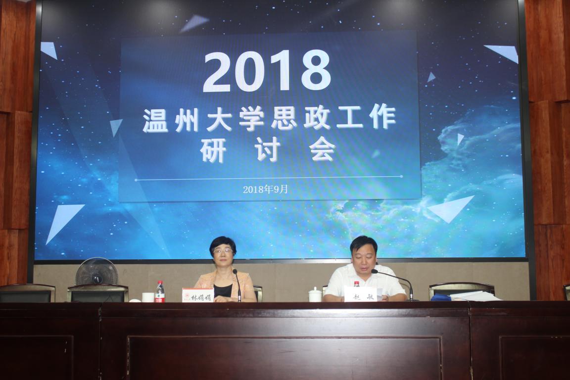9月4日至5日,新澳门六合彩 2018年思政工作研讨会在雁山厅举行。校党委书记林娟娟,校长赵敏,党委副书记牟德刚,党委委员、副校长方益权,党委委员、宣传部部长潘玉驹,各有关部门负责人,各学区、学院书记、副书记,校本部全体辅导员、全体思政课教师,瓯江学院辅导员代表共170人参加会议。