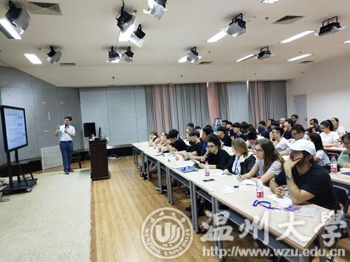 7月12日, 2018年新澳门六合彩 国际大学生暑期创业夏令营开营仪式在新澳门六合彩 举行,来自美国、意大利、韩国、孟加拉国、坦桑尼亚等国的60余人参加活动。外事处、创业学院的相关负责人、意大利锡涅纳大学玛利亚教授、韩国国立群山大学金显喆教授以及来自温州国家大学科技园、浙南科技城创业中心代表出席开营仪式。