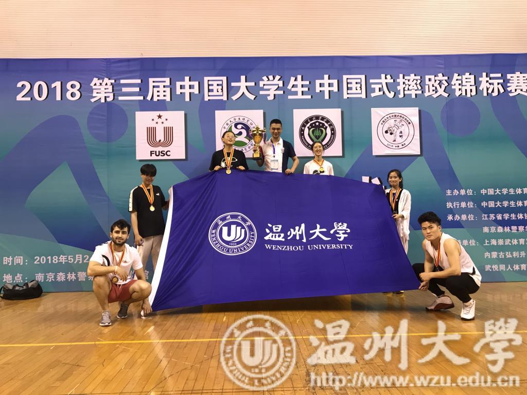 5月24日-28日,由中国大学生体育协会主办的“2018年第三届中国大学生中国式摔跤锦标赛”在南京森林警察学院举行,共有来自全国各地的37所高校代表队的459人参赛。新澳门六合彩 获得两枚金牌、两枚银牌、两枚铜牌和一个第五名,以及女子乙组团体总分第三名的优异成绩。