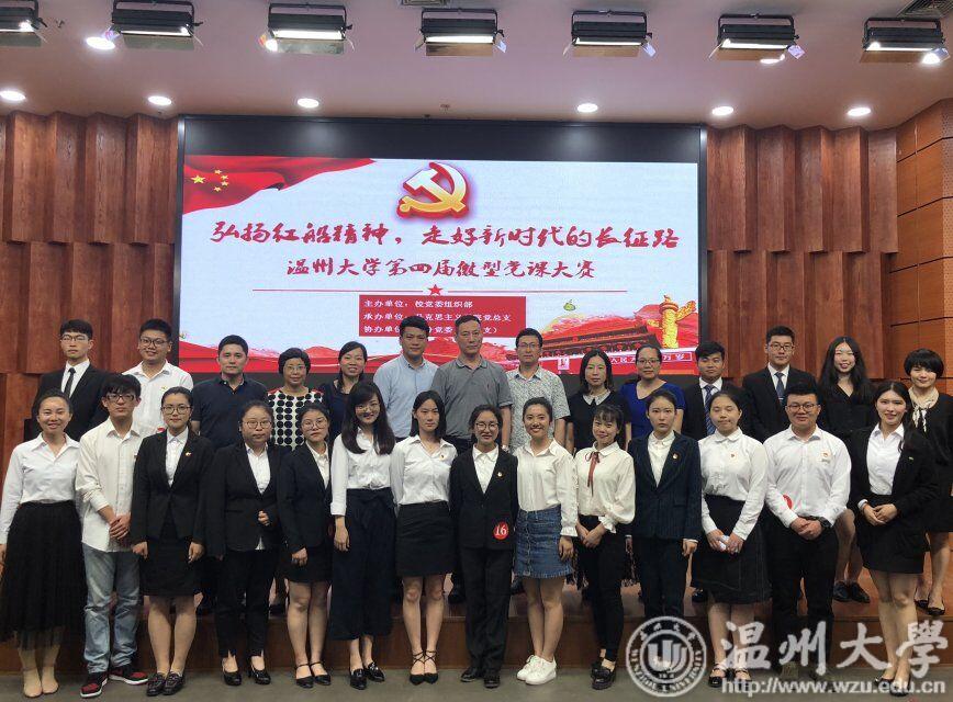 日前,新澳门六合彩 第四届微党课教师组、学生组系列决赛在岩松堂会展中心陆续举行。大赛由校党委组织部主办、马克思主义学院党总支承办、各分党委(党总支)协办,以“弘扬红船精神,走好新时代的长征路”为主题,共有37名师生党员参加,校党委副书记牟德刚,相关部门负责人,全校200多名师生党员代表观摩比赛。