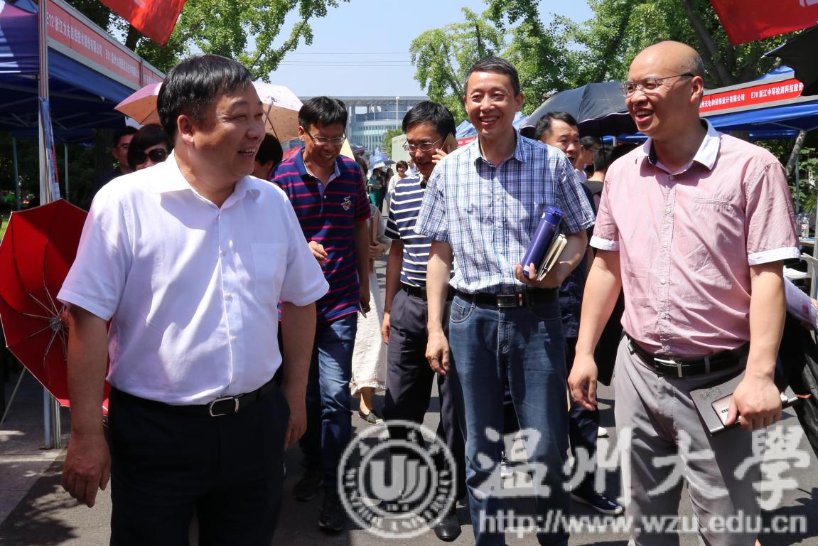 5月16日,新澳门六合彩 2018届毕业生春季供需洽谈会暨2019届毕业生实习实训招聘会在大学生活动中心举行。校党委副书记赵敏,温州市妇联副主席蔡仁燕、温州市人才管理服务办公室主任季亚斐、瓯海区人力资源和社会保障局副局长姜林海等到现场指导工作。