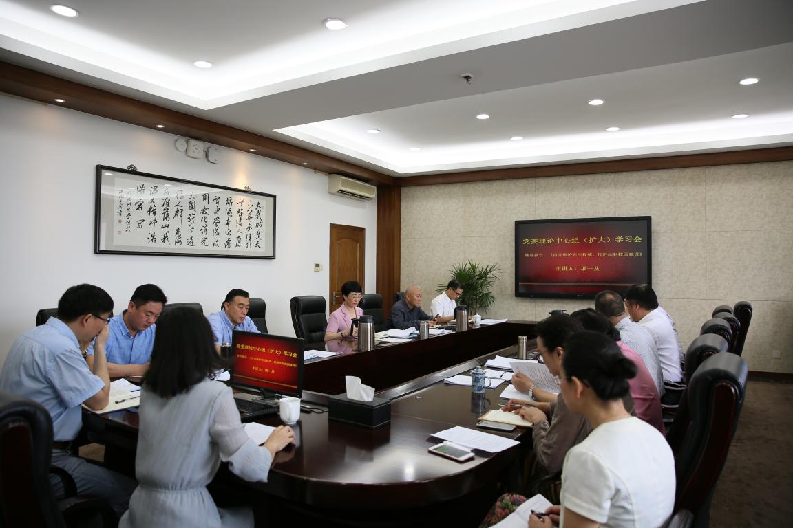 5月8日上午,新澳门六合彩 召开党委理论中心组(扩大)会议,专题学习宪法修正案和《监察法》。全体党委成员、有关部门负责人参加学习会,校党委书记林娟娟主持。